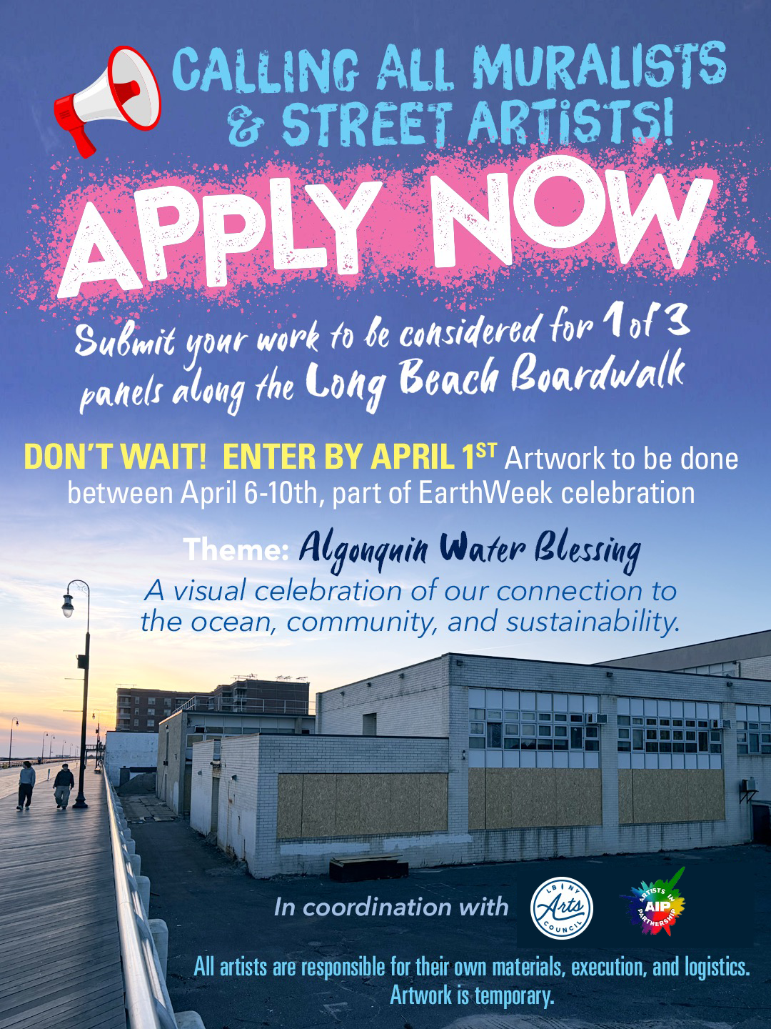 The Long Beach NY Arts Council invites muralists and street artists to participate in a unique, large-scale public art opportunity on the Long Beach Boardwalk.